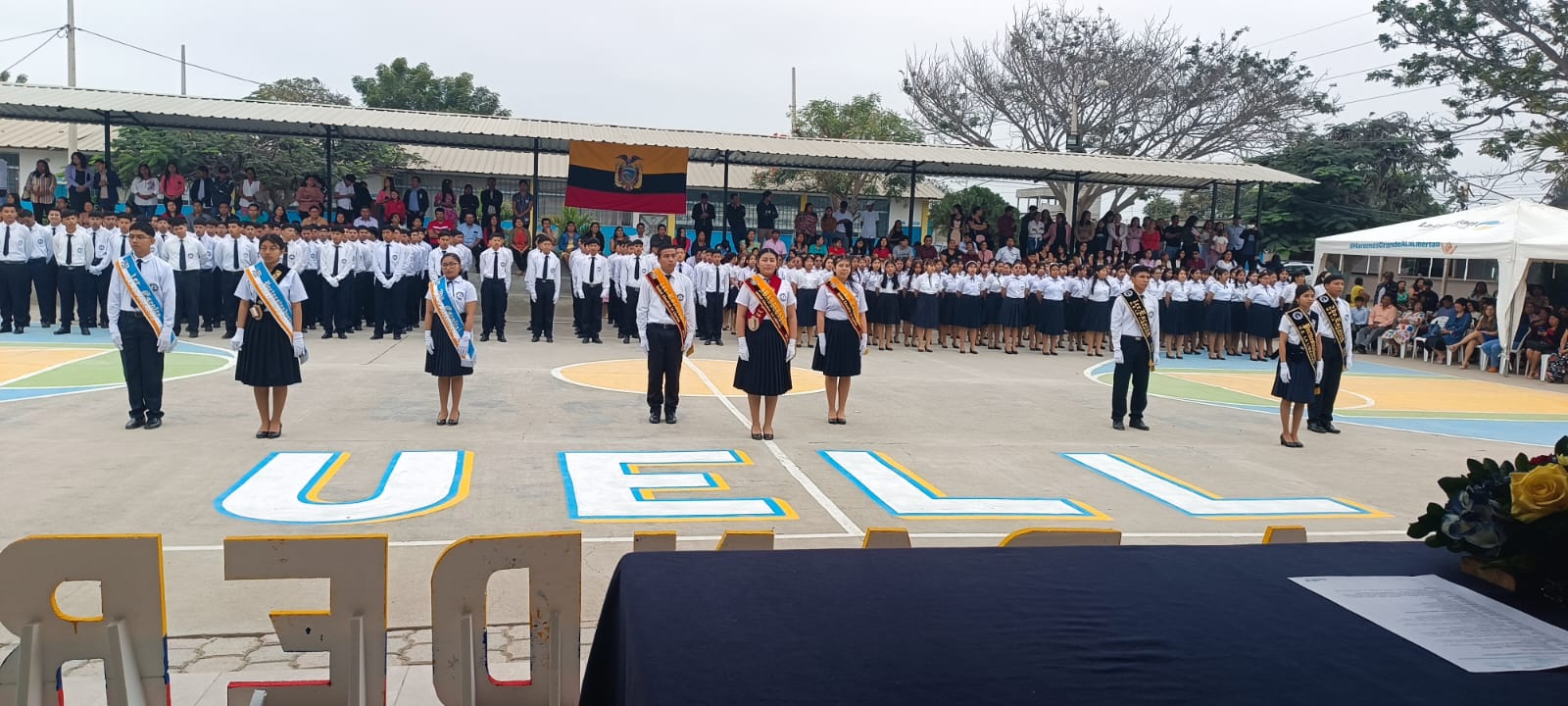 El día de hoy los estudiantes de 3ero BGU jornada matutina se mostraron de una manera muy formal y respetuosa durante el evento al juramento a la bandera. Este evento constó de varios puntos como: la bienvenida a los padres, reseña histórica de la Bandera del Ecuador, Recitación de poema a la bandera, juramento colectivo, juramento individual, entre otros. El respeto, la lealtad y devoción tomaron lugar en los estudiantes al momento de jurar y/o venerar este símbolo patrio. No solo al momento de jurar, sino al momento de entonar los himnos del Ecuador, del Cantón, de la Bandera y de la institución. Los estudiantes del cuadro de honor también resaltaron en este programa. No cabe duda que los estudiantes pusieron el amor y la devoción en este día tan importante